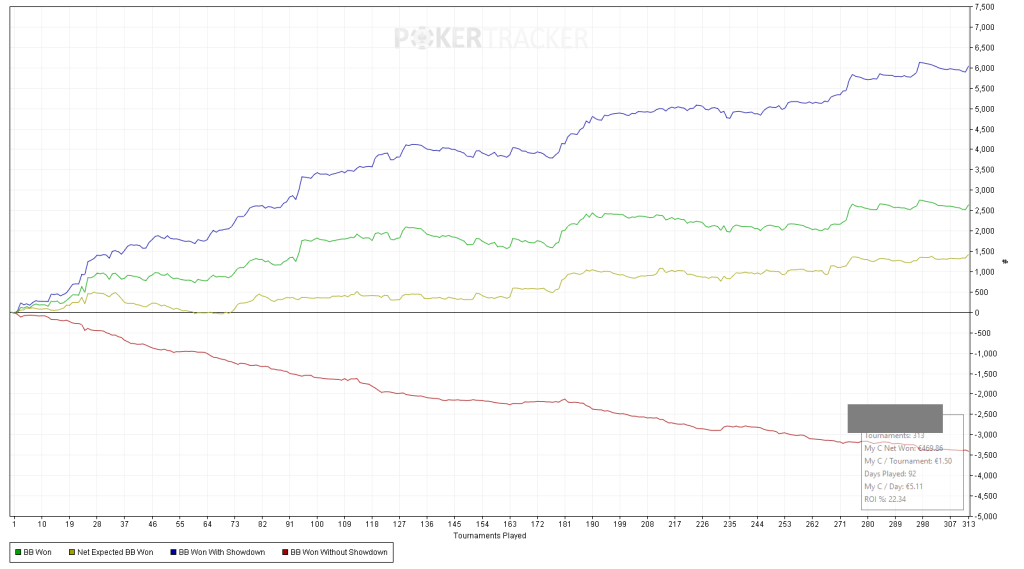 Después del podio, no vino ninguna racha buena. Vinieron meses de estudio, de jugar bastante, de revisar manos… y de perder. No se si eran por malos beats o por manos locas simplemente no llegaban los resultados.